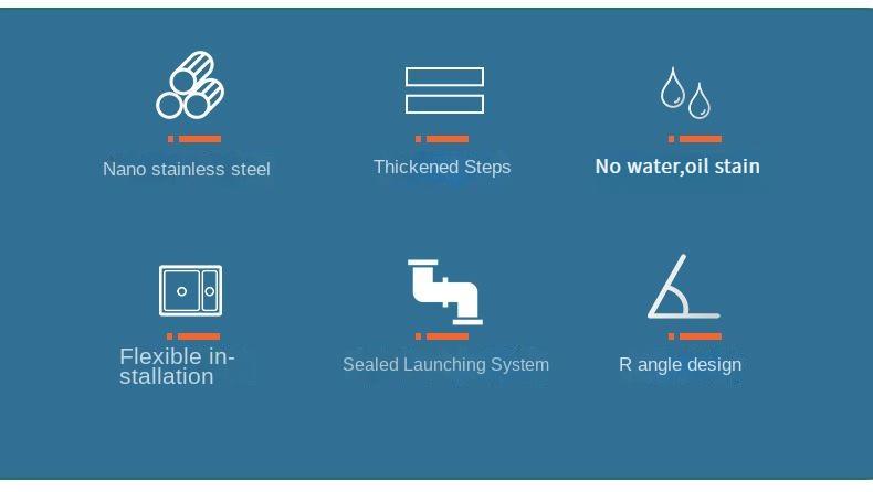 • Thickened Double Step Design: The sink is reinforced with a thickened double-step design, enhancing its durability and providing more convenience during cleaning.