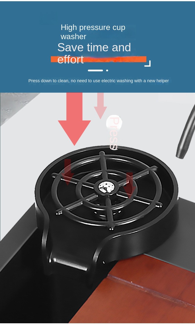 • High-Pressure Cup Washer: Designed with a press-type cleaning mechanism, it eliminates the need for electric power while saving time and effort in washing cups and other small items.