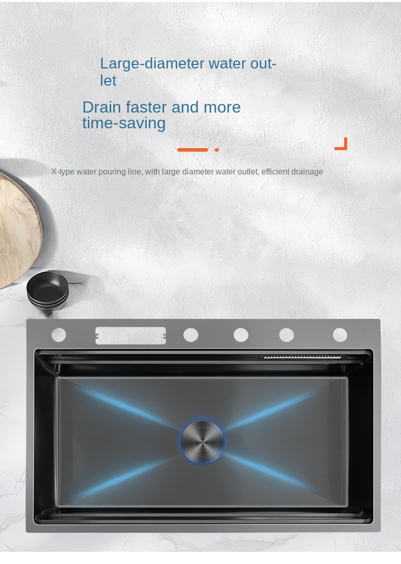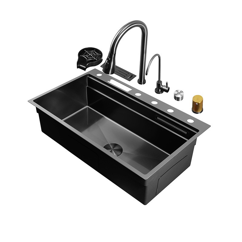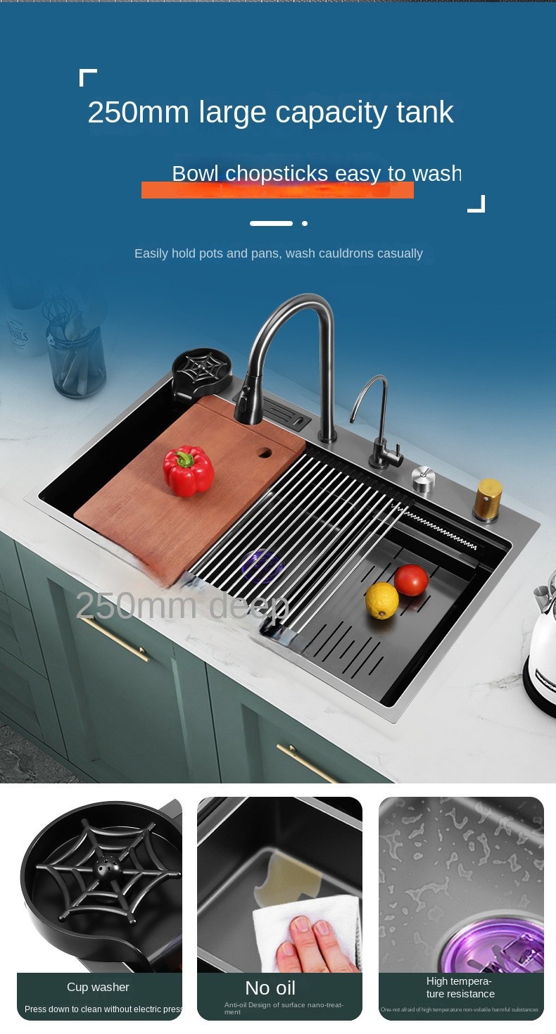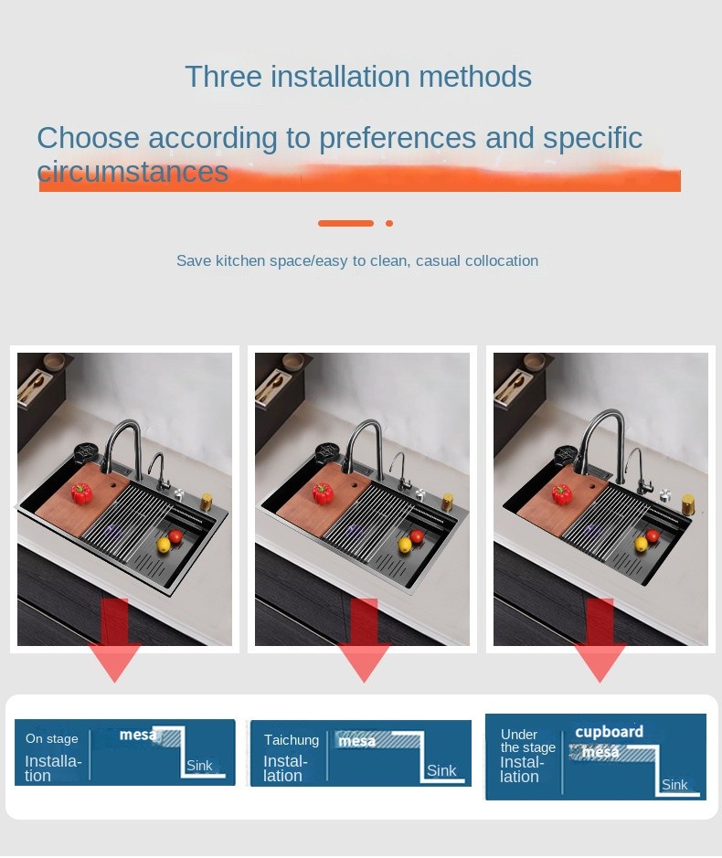 The ESMark™ Large Capacity Multifunctional Double Step Sink is a cutting-edge, multifunctional sink designed to enhance the efficiency and convenience of modern kitchens. Its large capacity and versatile features make it a comprehensive solution for various kitchen tasks.