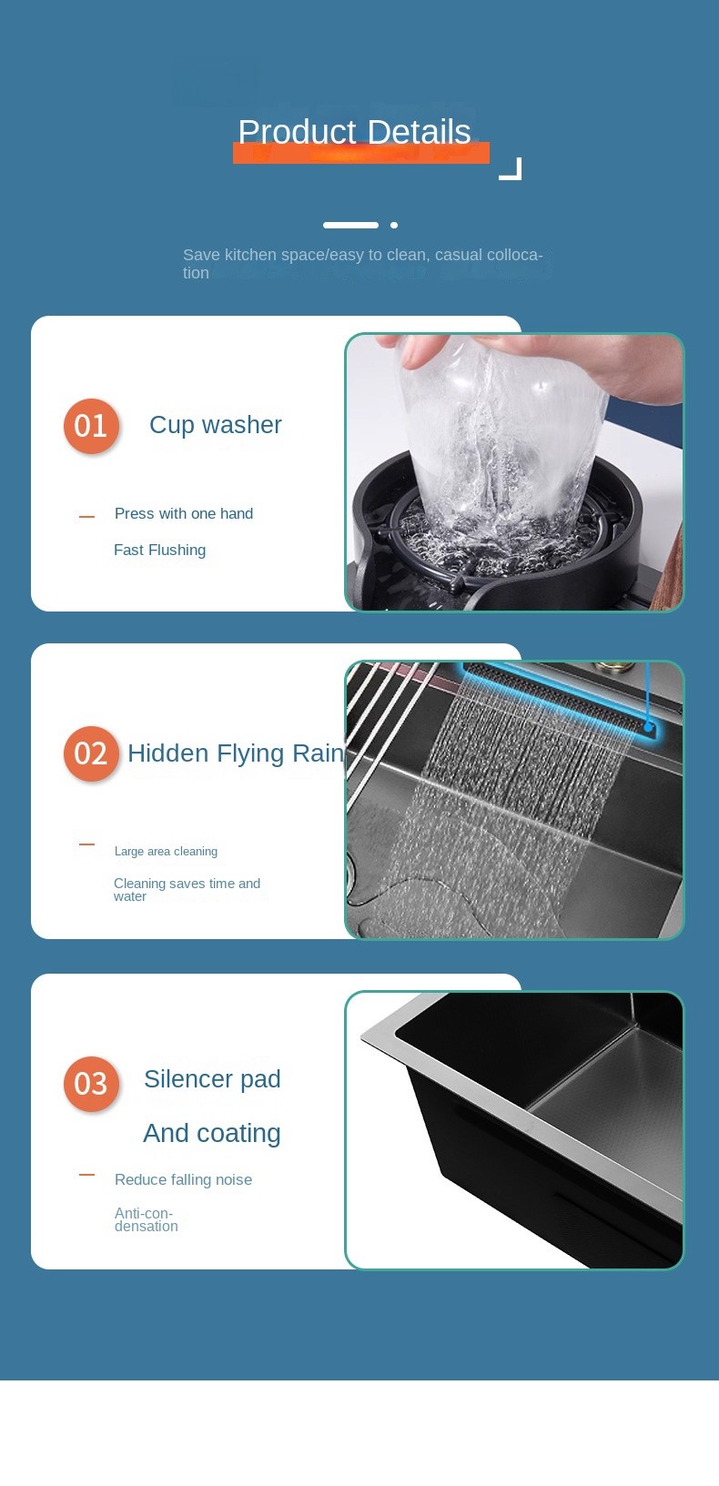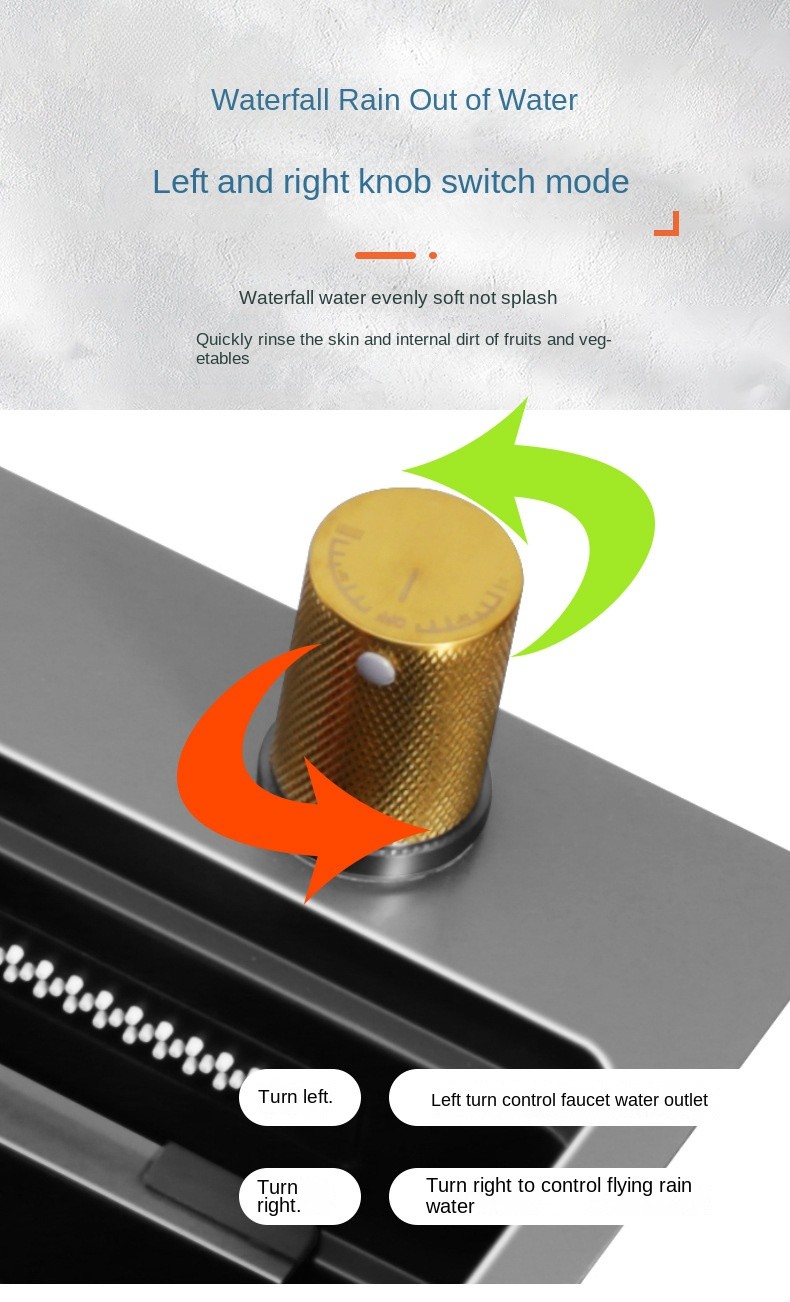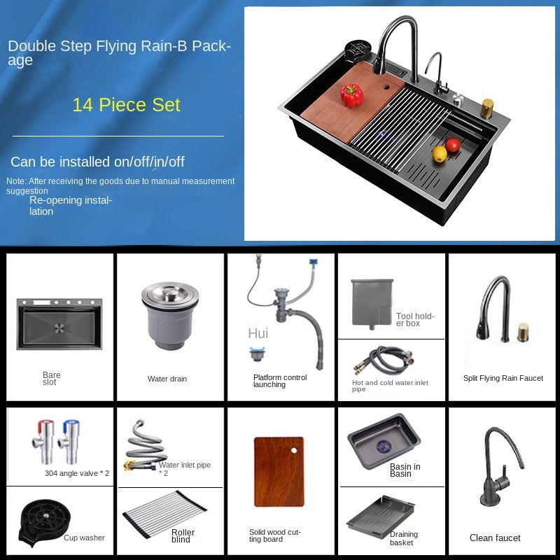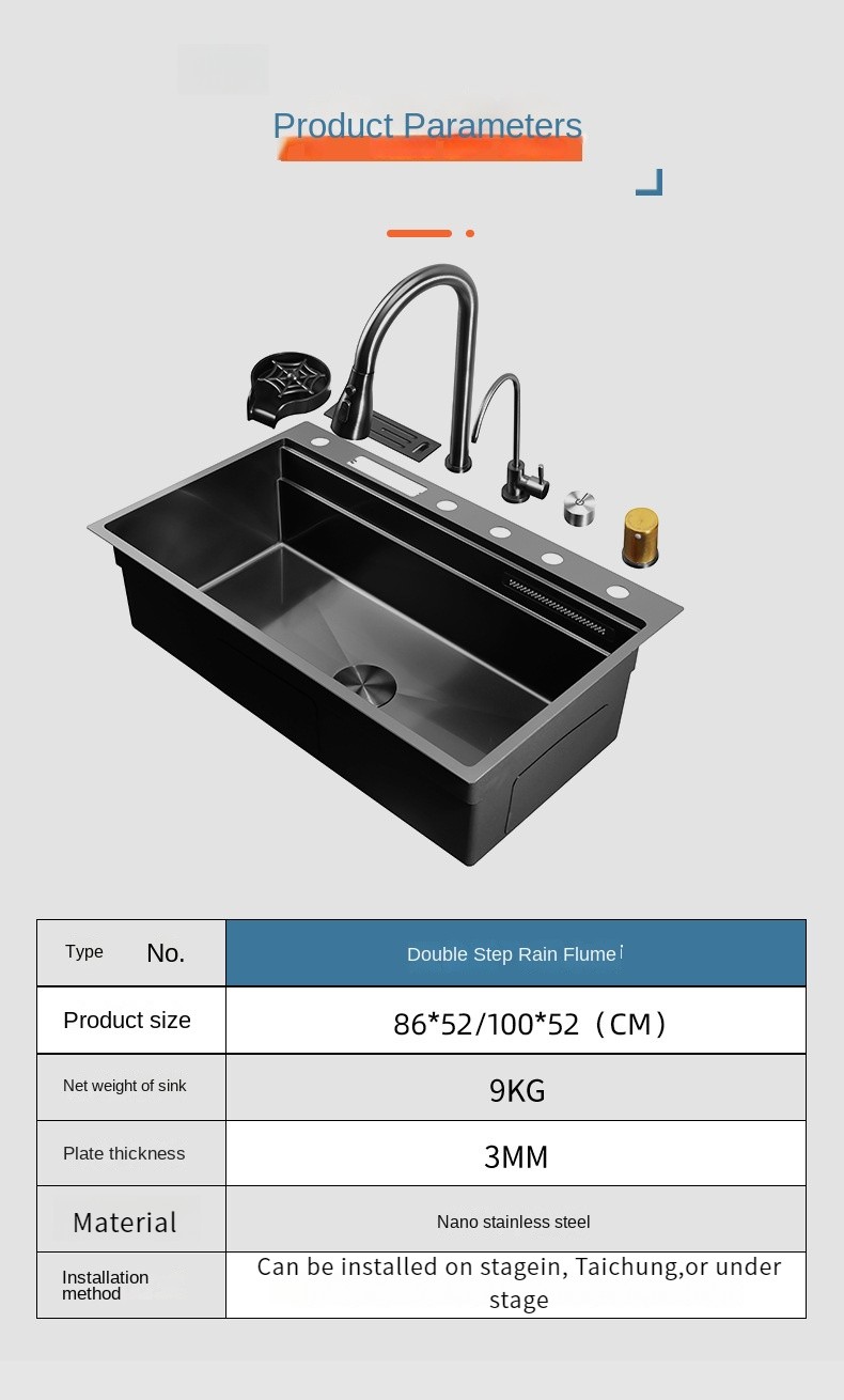 - Double Step Rain Flume Design: The unique double step rain flume design not only enhances the sink’s visual appeal but also optimizes water flow efficiency, meeting diverse kitchen needs.