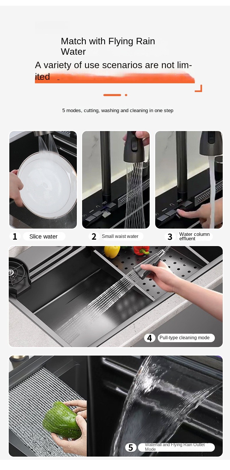 - Match with Flying Rain Water: Compatible with the Flying Rain Water system, offering five modes for cutting, washing, and cleaning to improve efficiency.