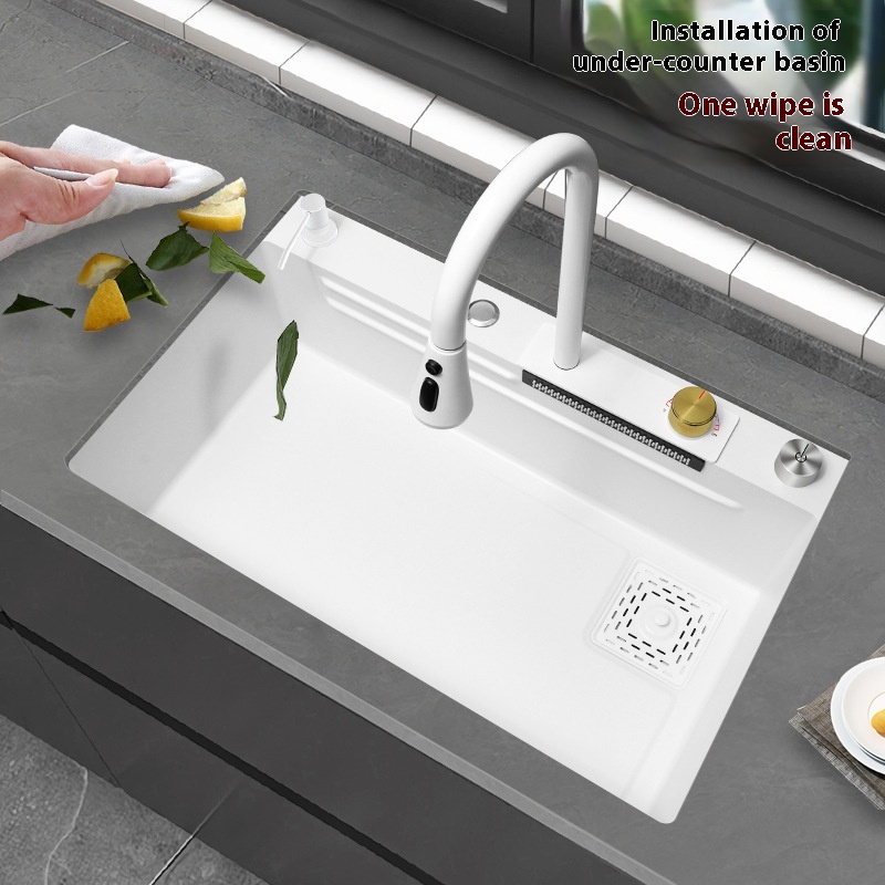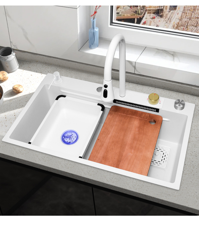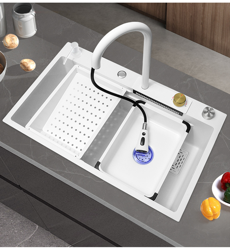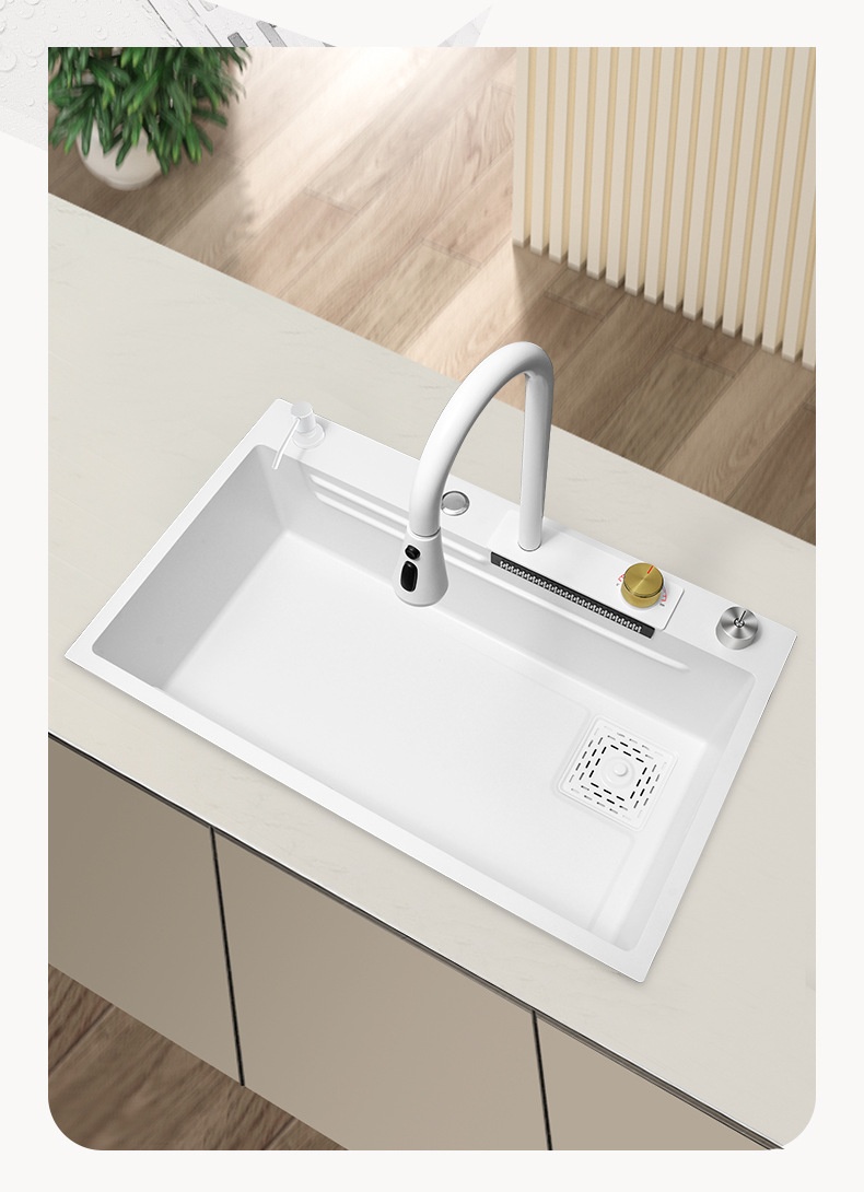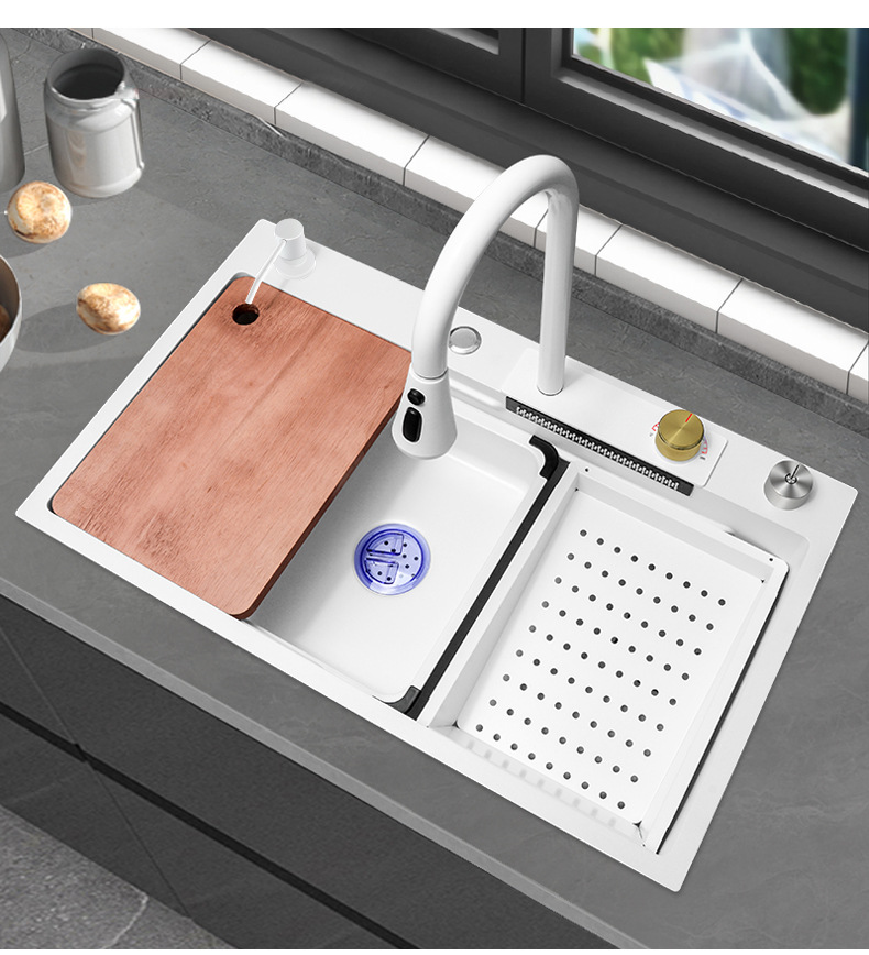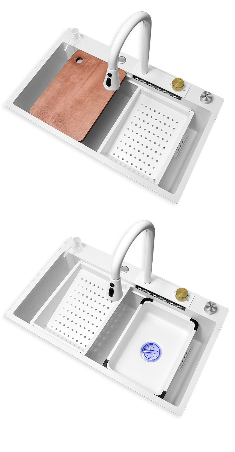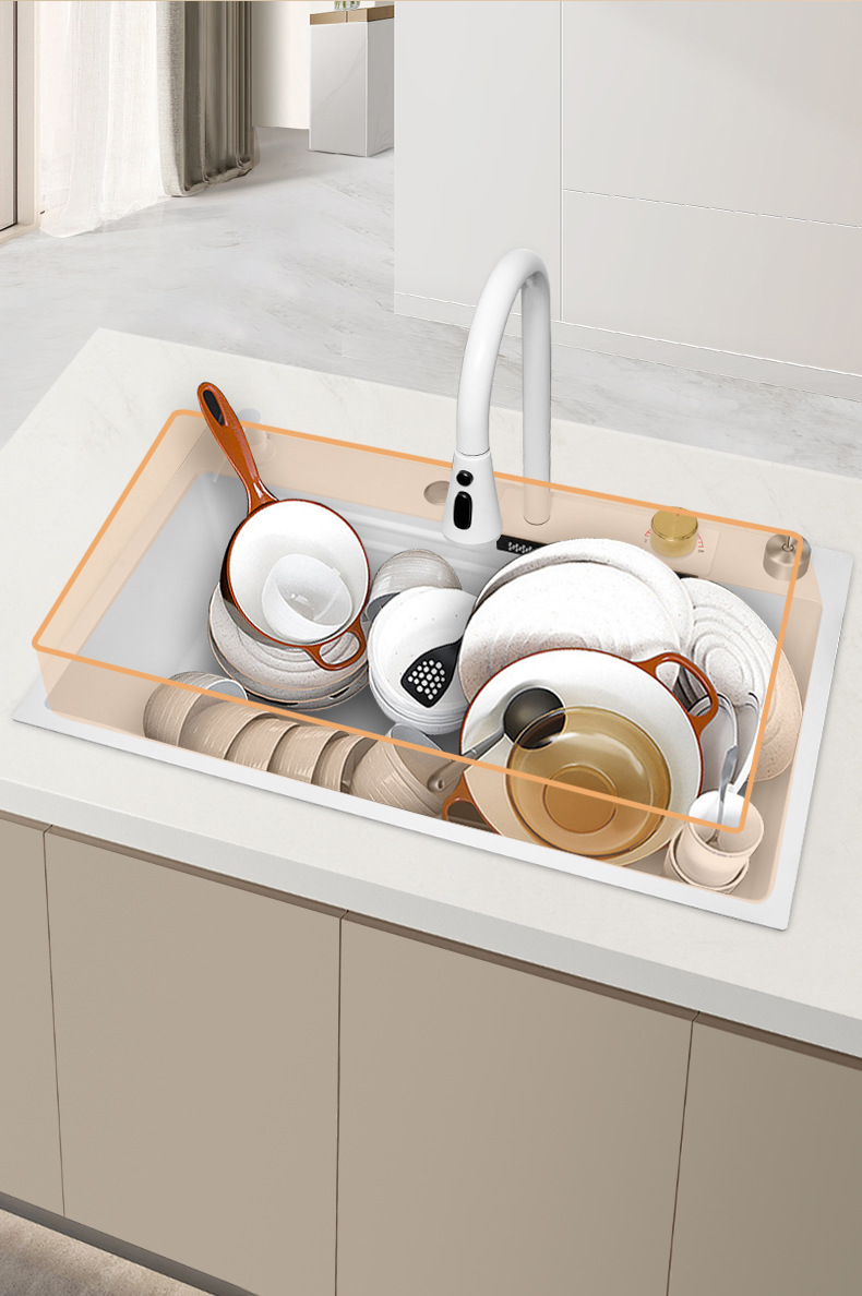 The ESMark™ White Nano Stainless Steel Kitchen Sink is the perfect blend of elegance and practicality, making it a great choice for modern kitchens. Its large capacity, easy-clean features, and multi-functional design elevate your kitchen’s efficiency while providing a sleek and stylish look.