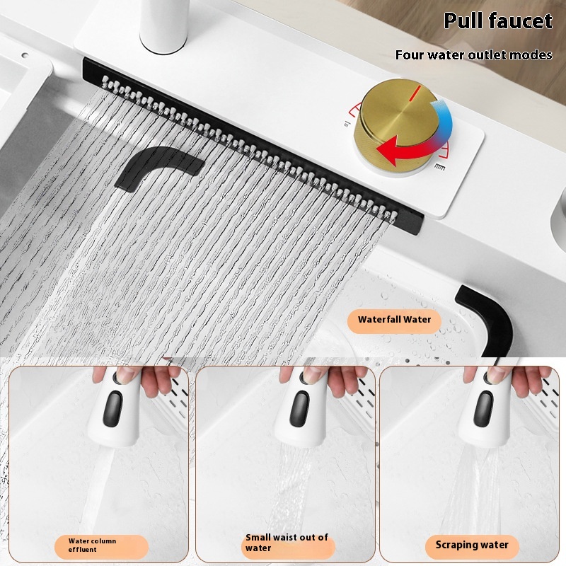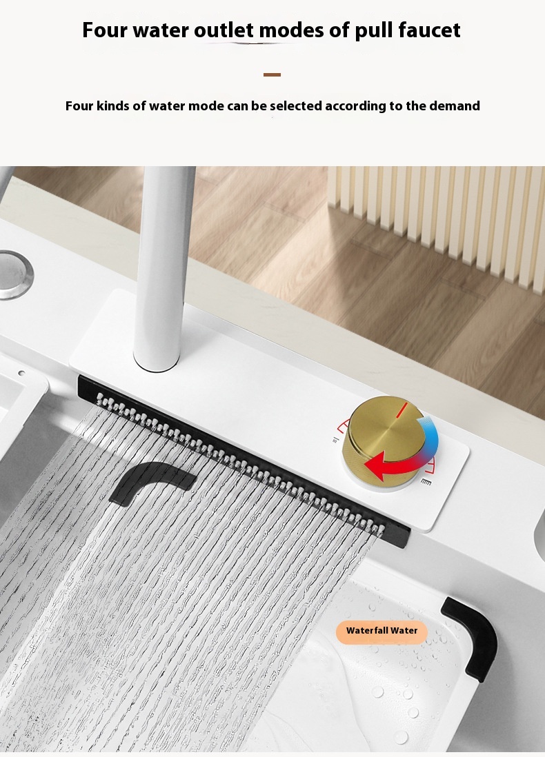 Four Water Modes: The pull-out faucet offers four adjustable water modes, including waterfall, water column, waist water, and scraping flow. These modes can be selected based on your cleaning needs, making it easier to handle various kitchen tasks.