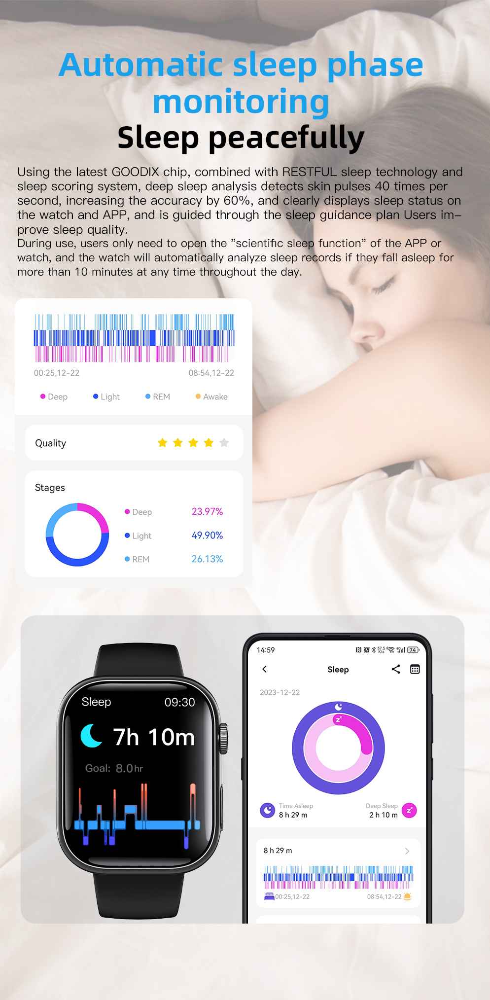 ✅ All-Day Comfort: Featherlight 90g design with skin-friendly silicone strap options