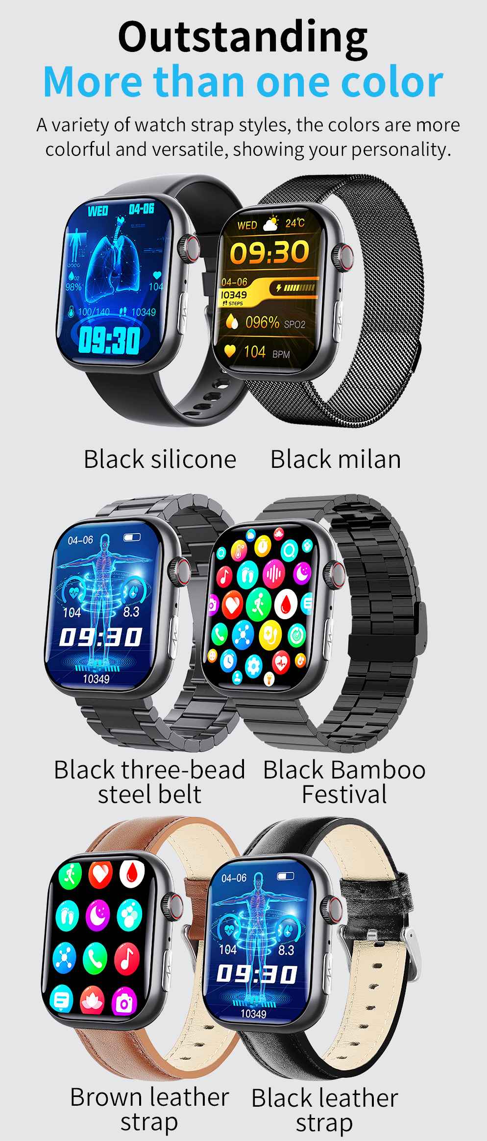Designed for modern lifestyles, the sleek 41-43mm square IPS smartwatch combines runway aesthetics with lab-grade health tech. Featuring an anodized aluminum alloy case and 12 fashion-forward bands (Black Milanese/Leather Brown/Diamond Studded et al.), it adapts seamlessly from office wear to weekend adventures.
