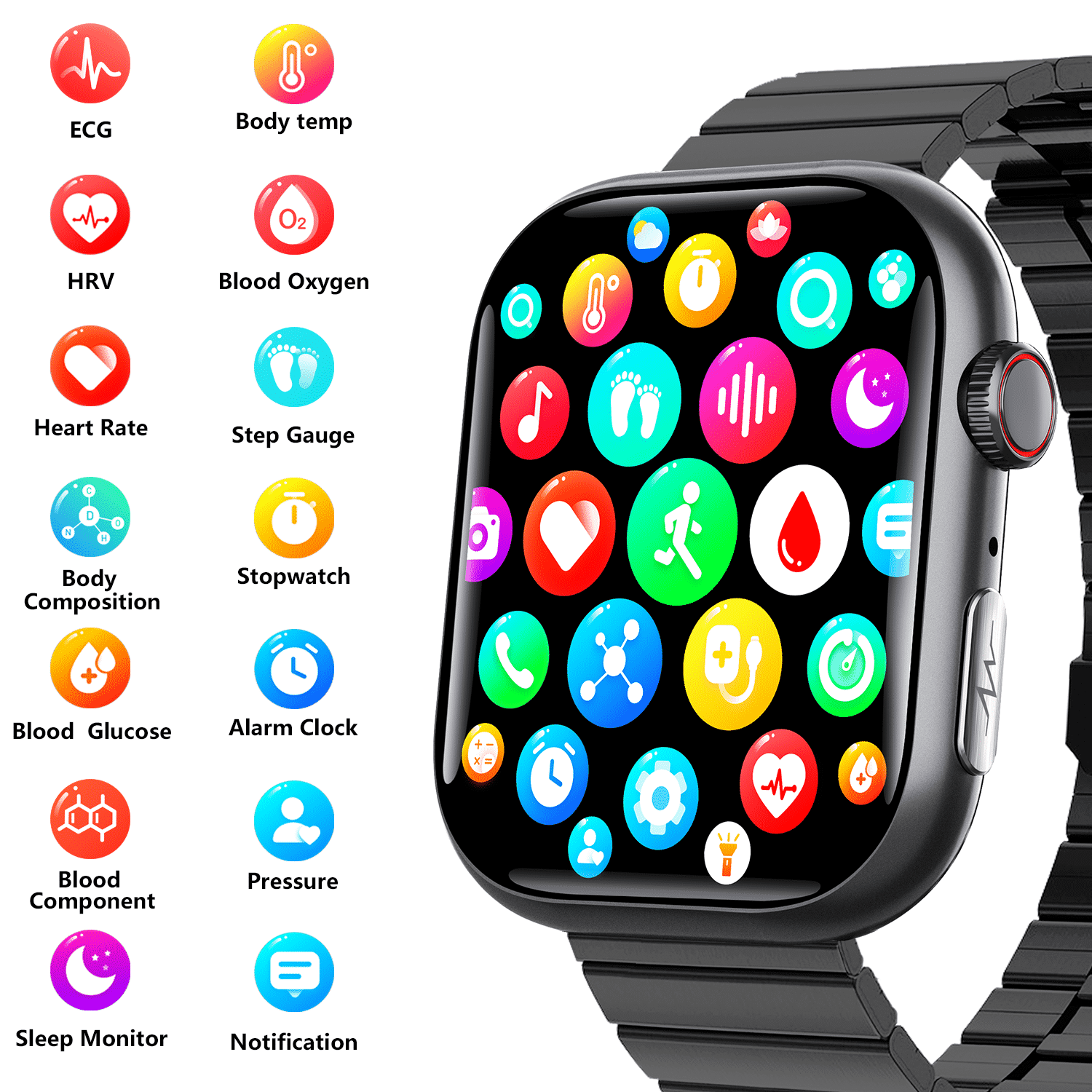 Ideal For: Health-conscious urbanites seeking a versatile accessory. Includes: Smartwatch + Charging Cable + Spare Band + Gift Box.