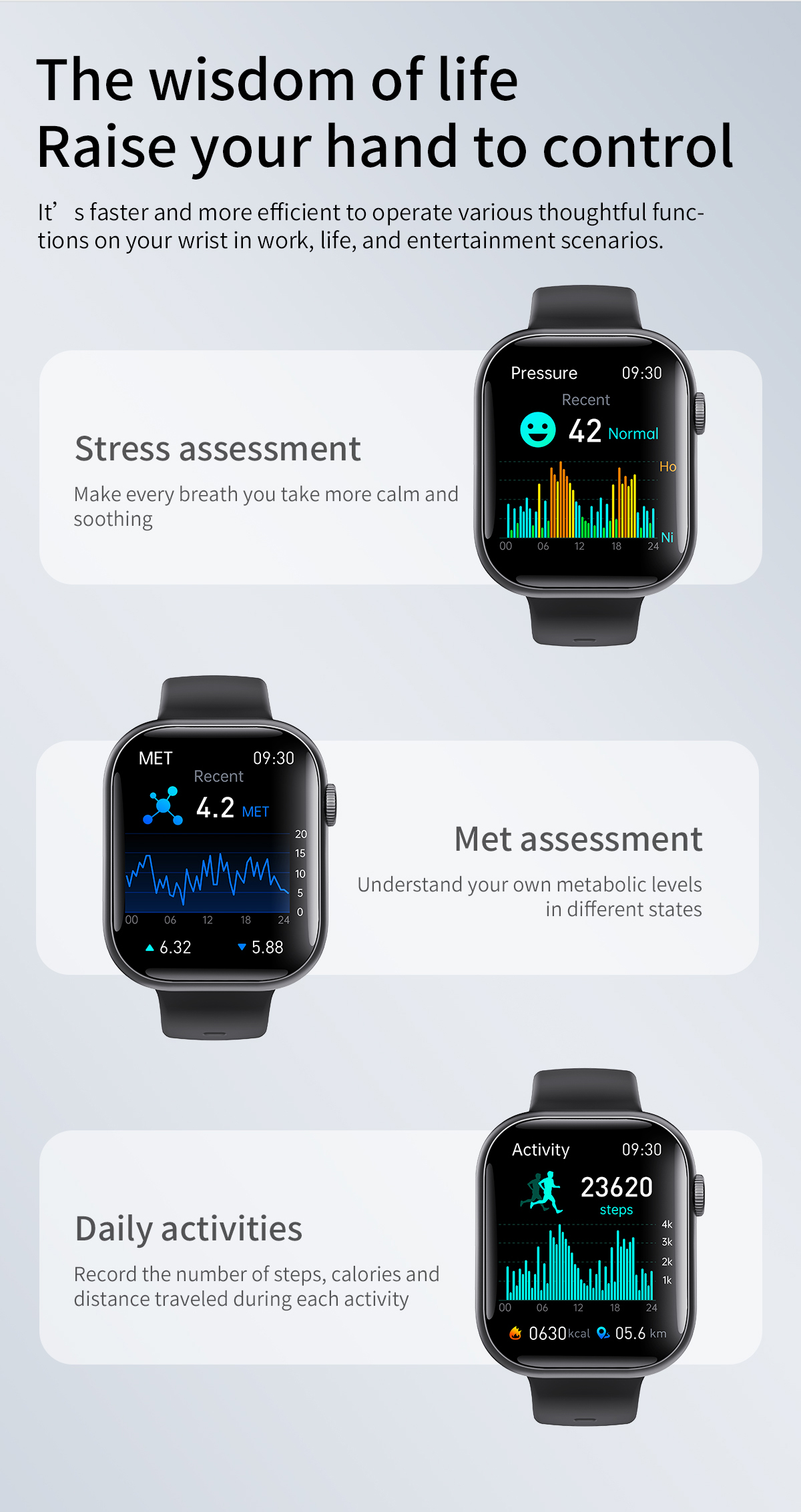 7-in-1 Health Monitoring: Precise tracking of heart rate, blood pressure, blood oxygen (SpO₂), sleep quality, steps, calories, and stress levels