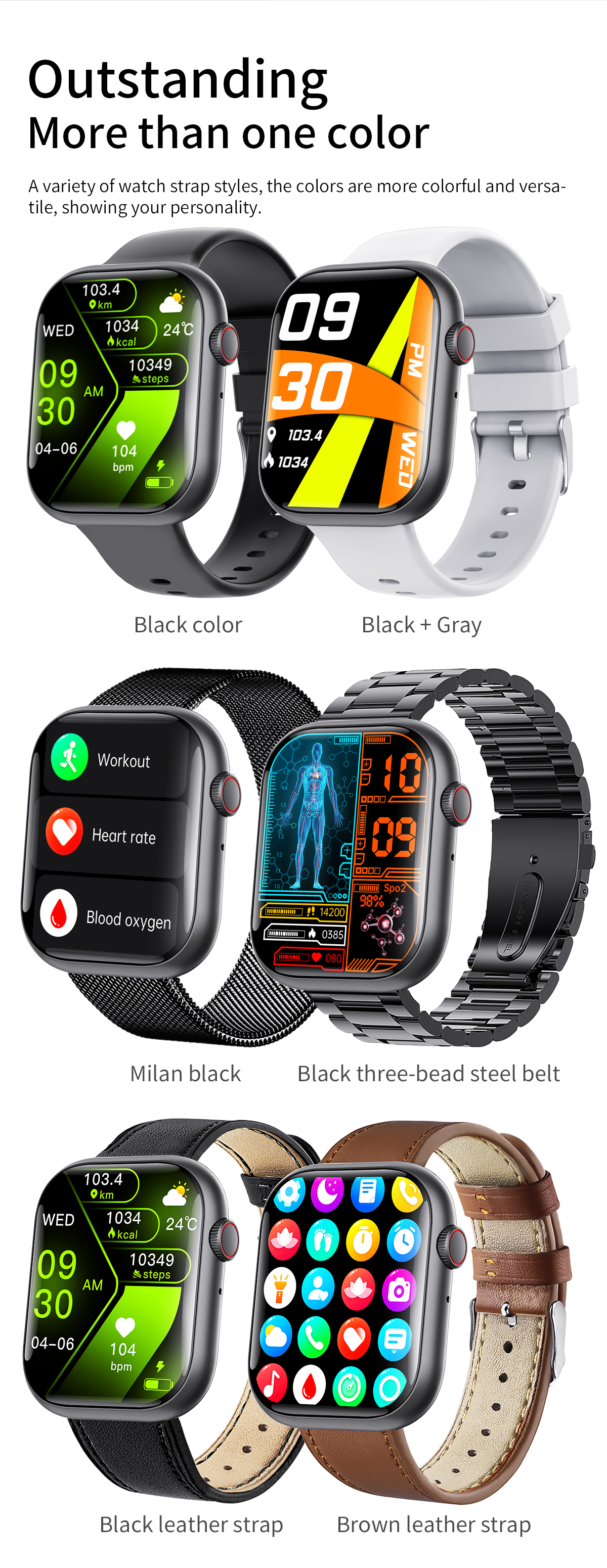 Premium Customization: Swap between 7+ bands (silicone, Milanese mesh, leather) in colors like Black Milanese, Silver Triple-Stripe, and Brown Leather