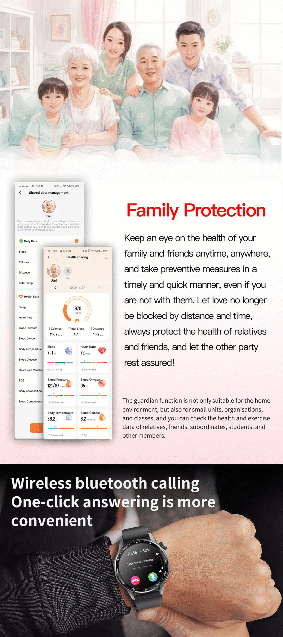 ✅ Health Guardian: Track vitals, sleep, steps, plus bluetooth calling, selfie remote control, and iOS notifications.