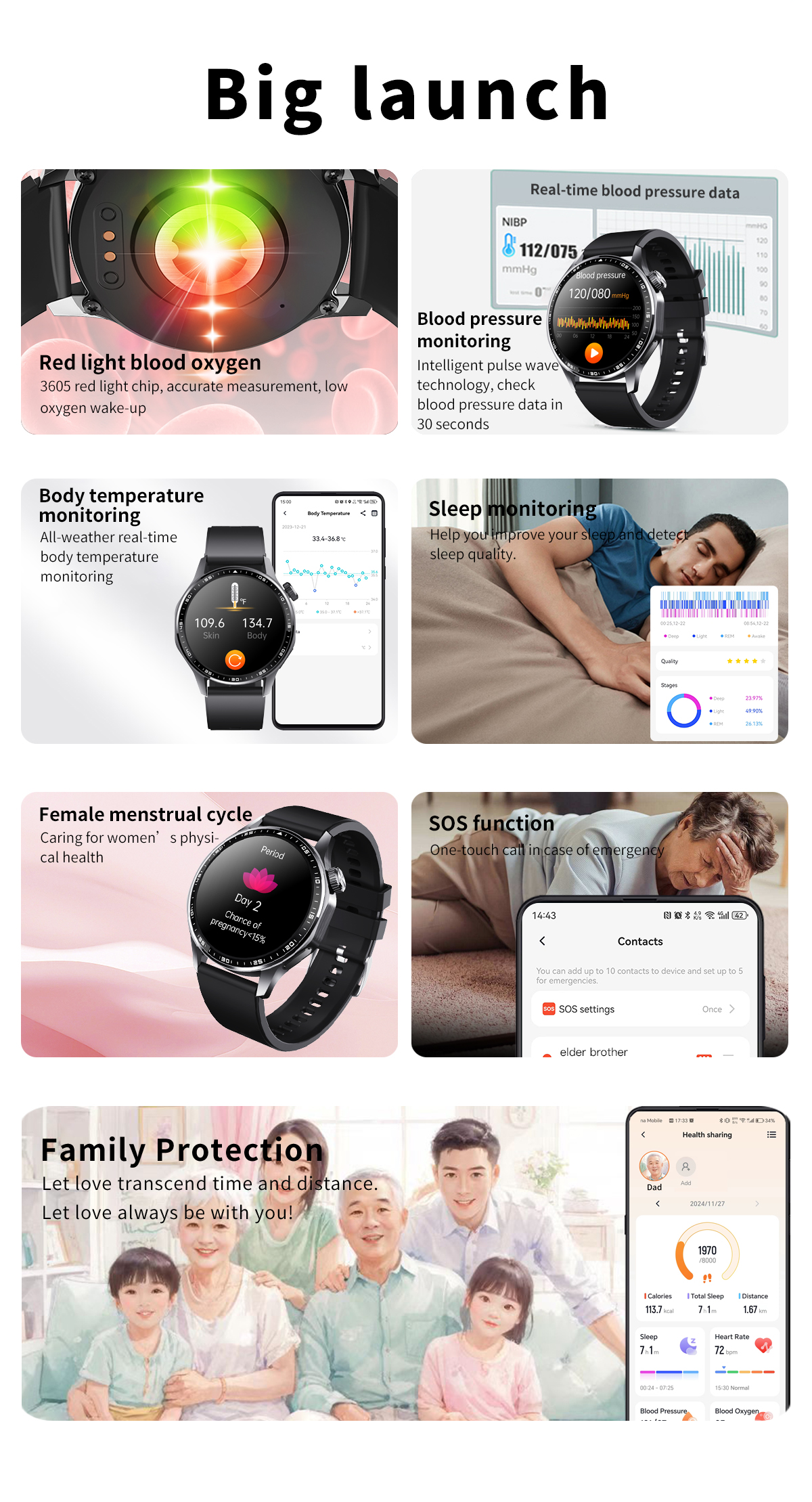 Experience unparalleled elegance and precision with this titanium-crafted smartwatch. Designed exclusively for cross-border markets, this IPS-screen wearable merges medical-grade health monitoring (heart rate/blood pressure/SpO₂/temperature) with timeless circular design (29-35mm).