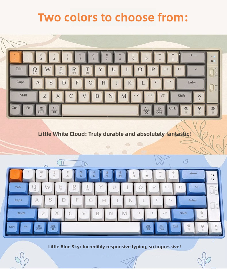 | type | Keyboard and Mouse Set – Milky White, Gold Switch, Three Connection Modes, Keyboard and Mouse Set – Milky White, Silver Switch, Three Connection Modes, Keyboard and Mouse Set – Sky Blue, Gold Switch, Three Connection Modes, Keyboard and Mouse Set – Sky Blue, Silver Switch, Three Connection Modes, Keyboard – Milky White, Gold Switch, Three Connection Modes, Keyboard – Milky White, Silver Switch, Three Connection Modes, Keyboard – Sky Blue, Gold Switch, Three Connection Modes, Keyboard – Sky Blue, Silver Switch, Three Connection Modes, CMW-GT, CMW-ST, CSB-GT, CSB-ST, KMW-GT, KMW-ST, KSB-GT, KSB-ST |