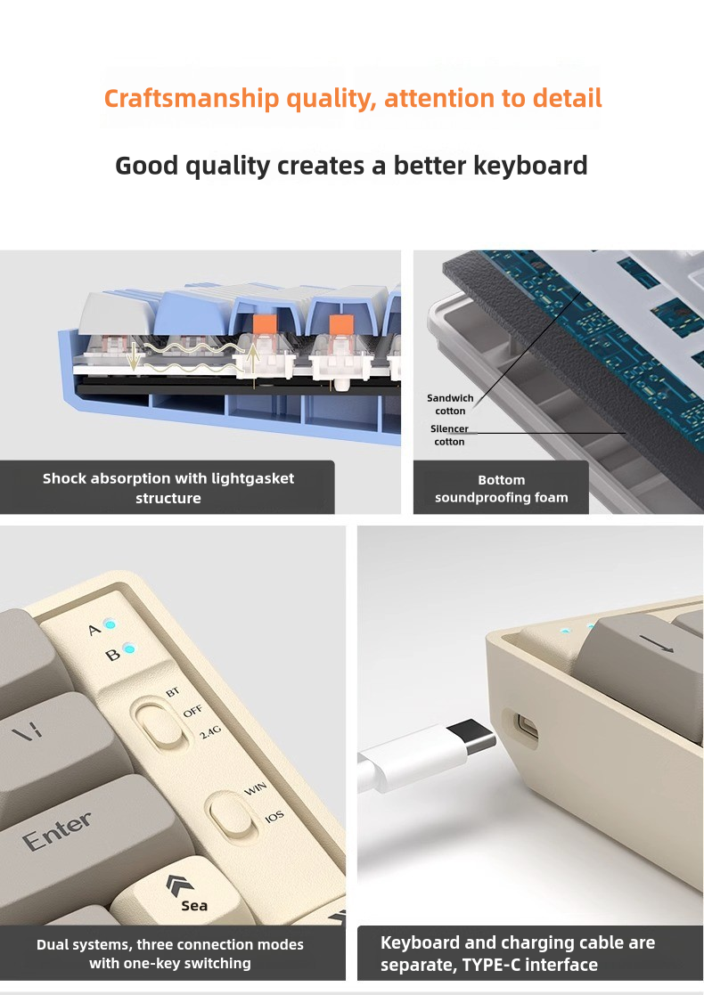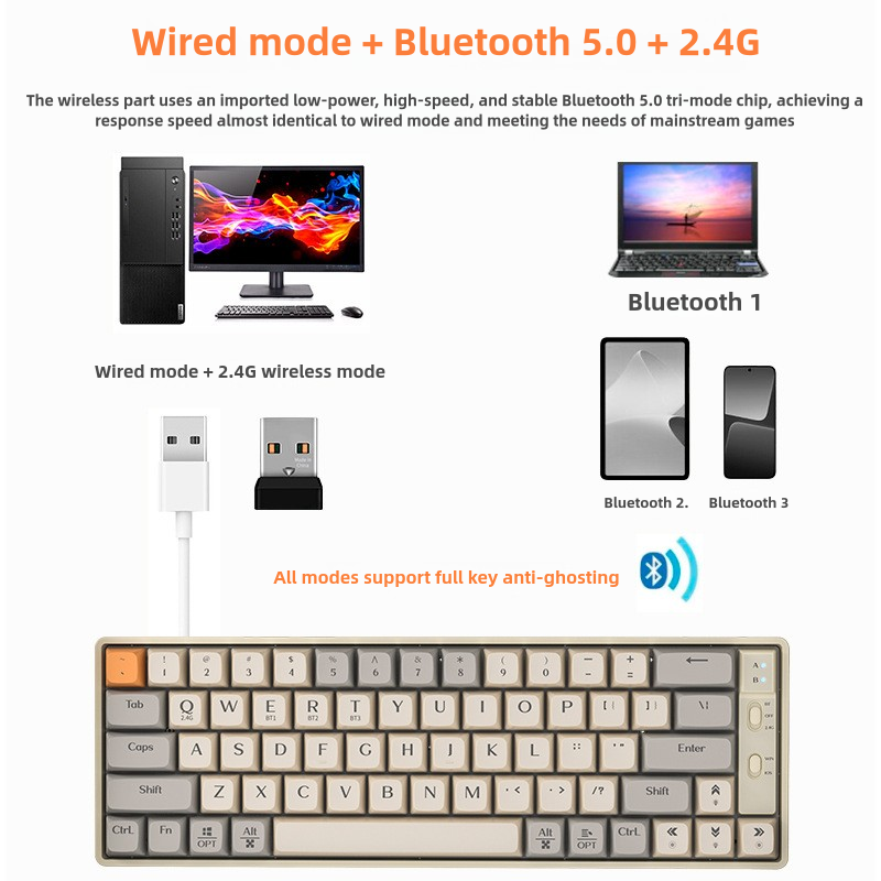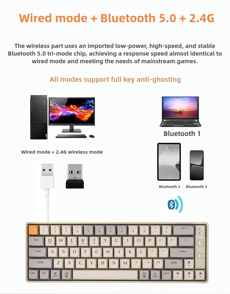 ✅ Triple Connectivity: Seamlessly switch between 2.4G wireless, Bluetooth 5.1, and USB-C wired modes for lag-free gaming or typing.
