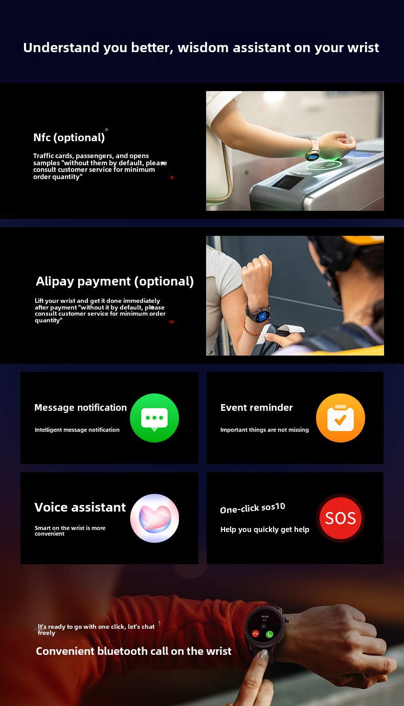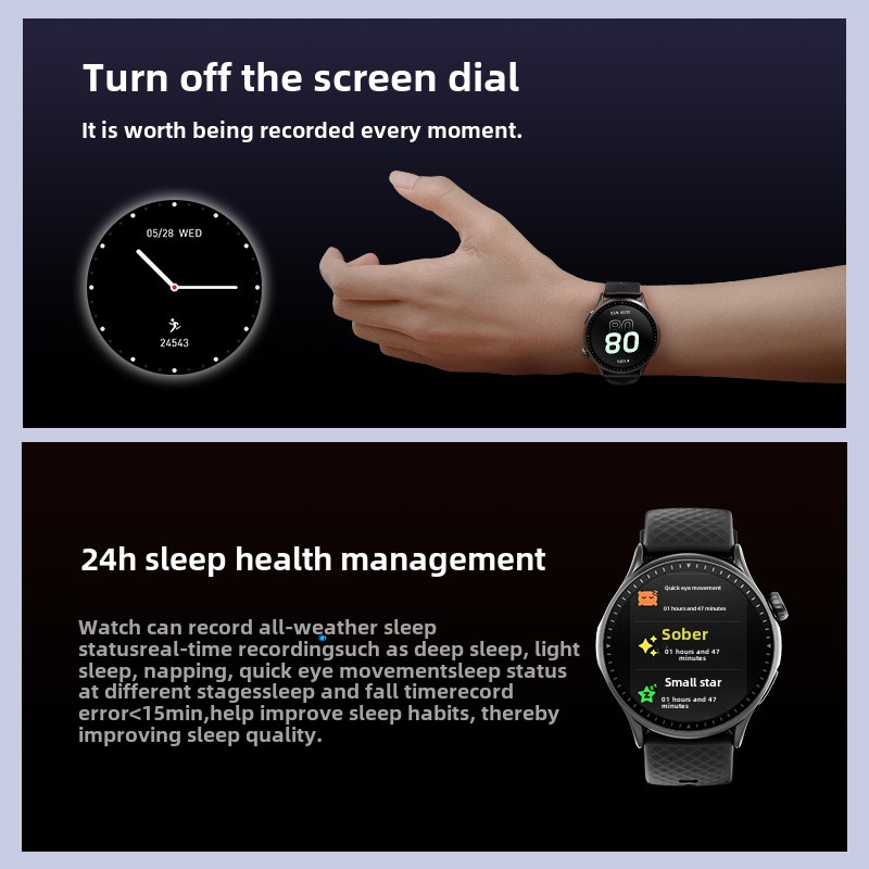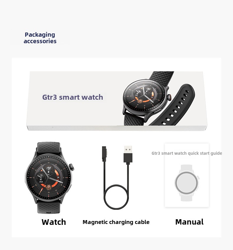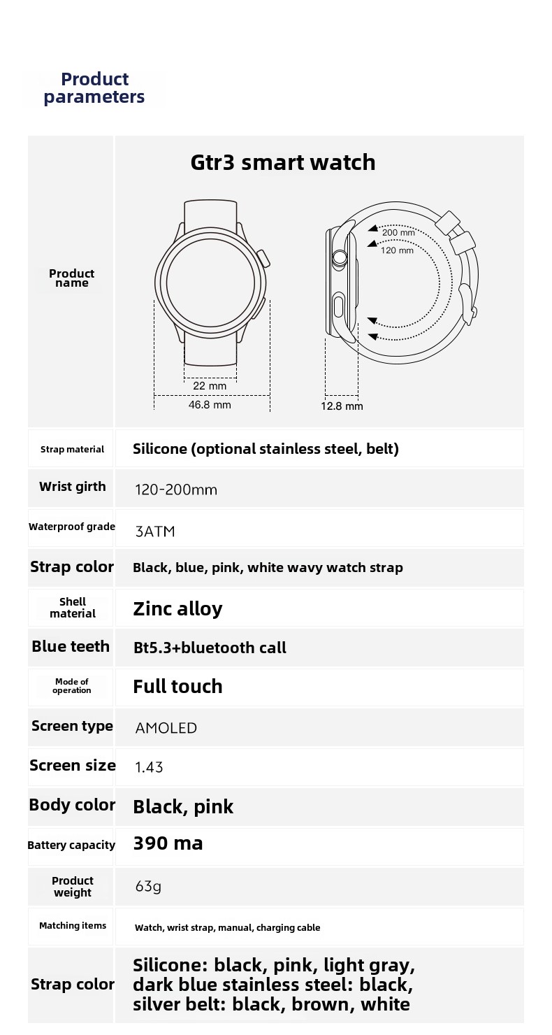 The GTR3 VitaGlow Pro redefines wearable elegance with its 44mm AMOLED infinity display, radiating crisp visuals even underwater (30m ). Seamlessly switch between touch gestures and tactile buttons while tracking heart rate, steps, and spontaneous photo captures via iOS Bluetooth sync. Customize your style with interchangeable silicone straps and bespoke watch faces, all powered by swift magnetic charging that juices up in minutes. Whether diving into workouts or boardrooms, its featherlight 63g build and 7-day endurance make vitality monitoring a silent revolution on your wrist.