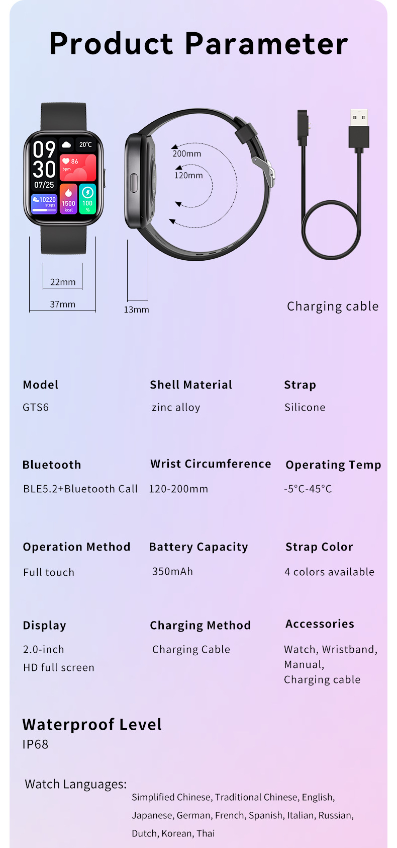 The GTS6 OmniTrack Pro redefines smart wearables with lab-grade precision in a sleek aluminum alloy frame. Engineered for adventurers and health-conscious users alike, this unisex smartwatch seamlessly integrates advanced health metrics (24/7 heart rate, blood pressure, SpO2, sleep analysis) with practical tech essentials: Bluetooth calling, step tracking across 12 workout modes, and wrist-controlled selfies. Survive extreme temps (-4°C to 45°C) and water depths, then recharge effortlessly via magnetic docking for 14 days of untethered freedom. Whether scaling mountains or navigating city streets, its minimalist rectangle design and multilingual interface adapt to every lifestyle.