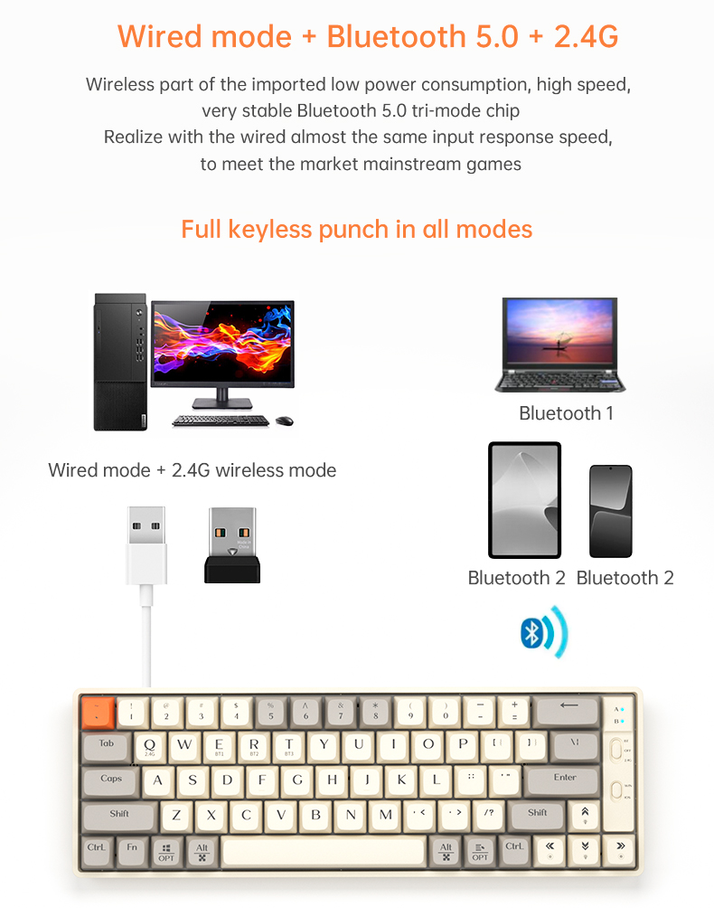 Tri-Mode Connectivity: Effortlessly switch between Bluetooth 5.0, ultra-fast 2.4GHz wireless, and reliable USB-C wired modes for maximum flexibility with any device.