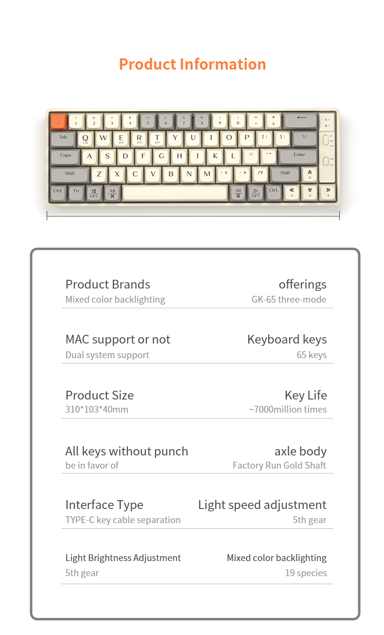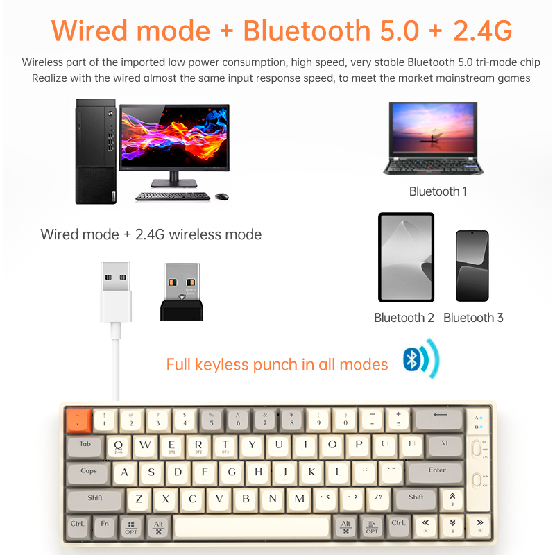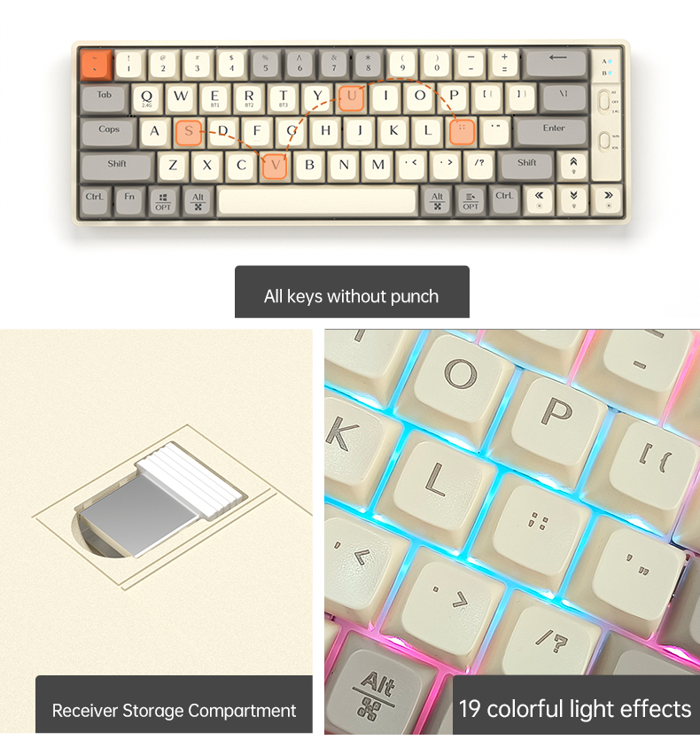 Experience typing perfection with our feature-packed 65% mechanical keyboard. Engineered for versatility and performance, it seamlessly adapts to your workflow and gaming style.