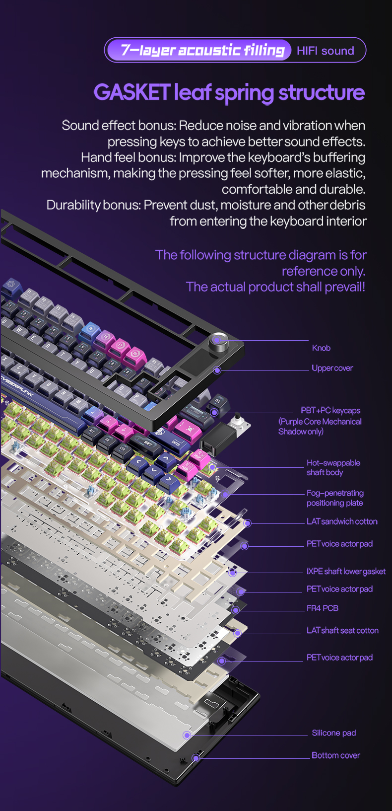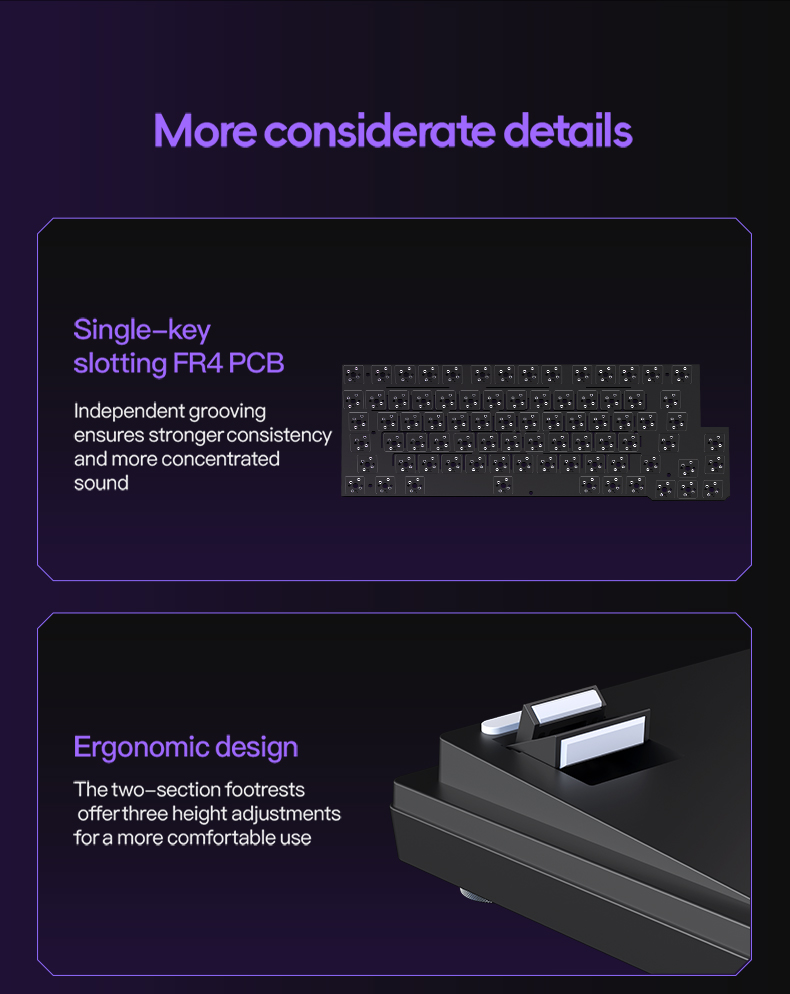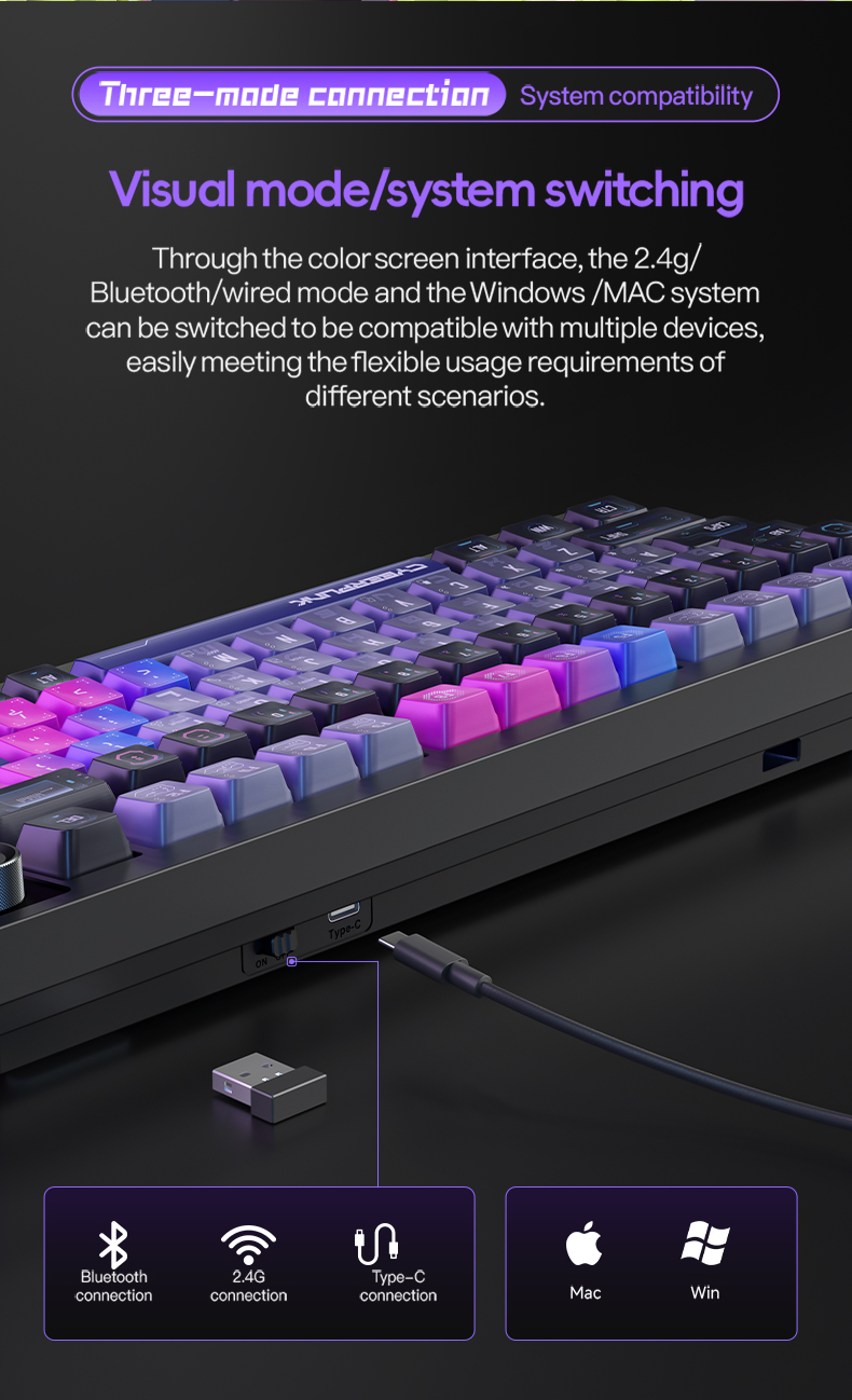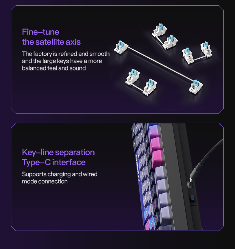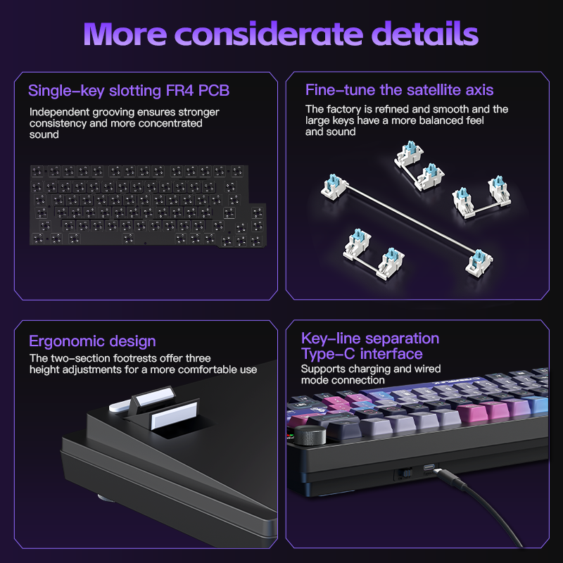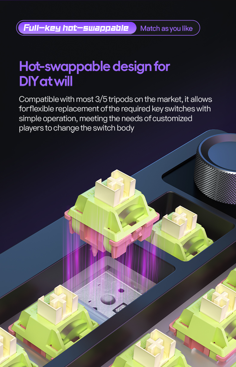 Premium Hot-Swappable Switches: Experience responsive, smooth keystrokes with your choice of Macaaron, Silver Jade, or Misty Rain switches.