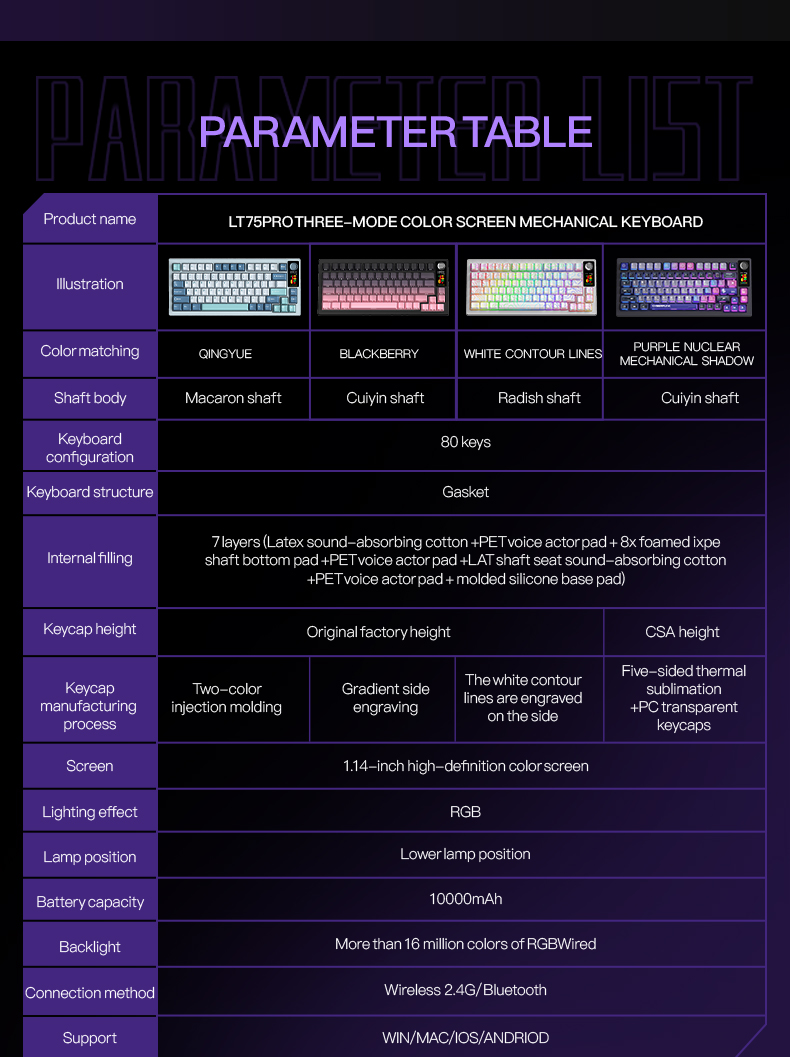 Dominate Your Workflow & Gaming Sessions: The WolfTu LT75Pro & LT75 keyboards deliver stellar performance and vibrant style. Choose from sleek colorways like Pro Youth-Moon or Ocean Salt to match your setup.