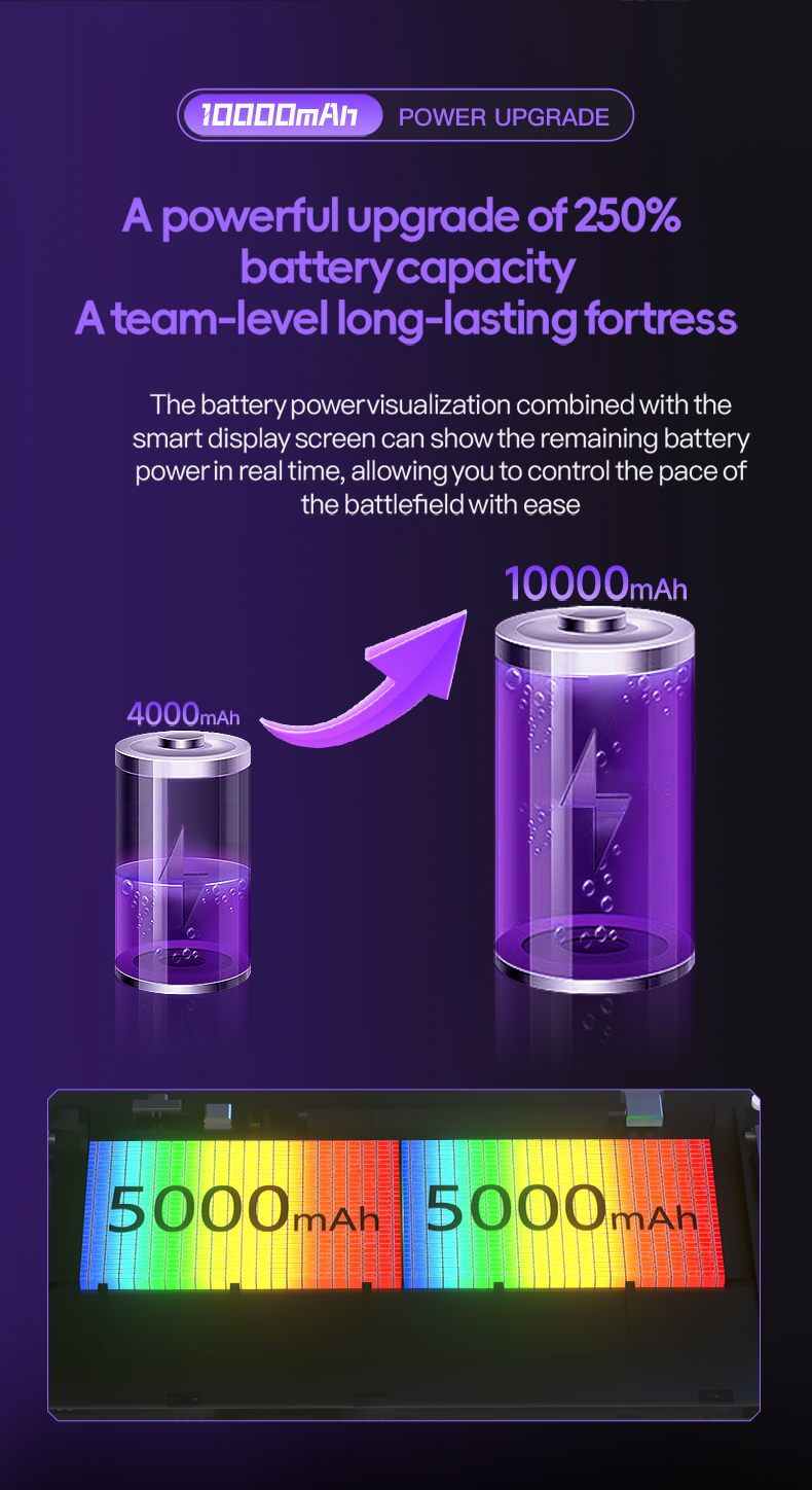 Massive 10,000mAh Battery: Enjoy exceptionally long wireless freedom – charge less, play or work more. (For Pro models with display/RGB)